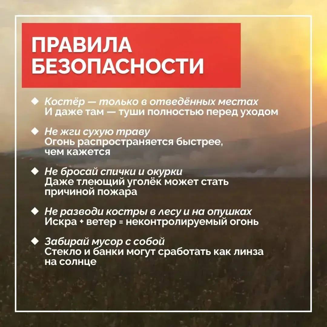 С 1 апреля в регионе введён пожароопасный сезон. Губернатор напомнил, что большинство возгораний происходит по вине человека — 99% лесных и ландшафтных пожаров связаны с человеческим фактором.