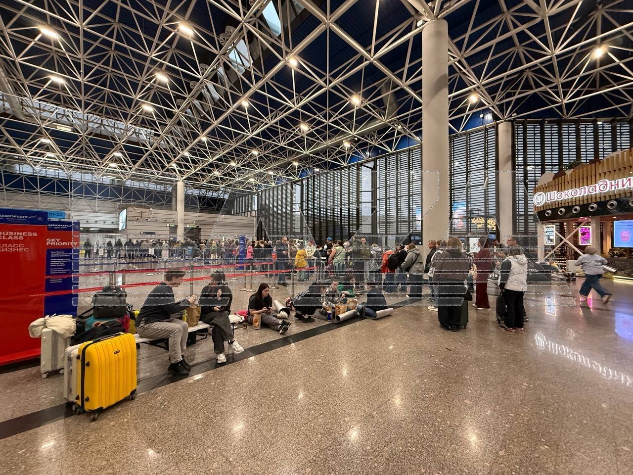 В настоящее время более сотни рейсов задержаны в аэропорту Сочи. Пассажиры спят на полу в зоне вылета, некоторые возвращаются в гостиницы, пишет ТГ-канал Baza. Некоторые ожидают вылета уже более 16 часов.