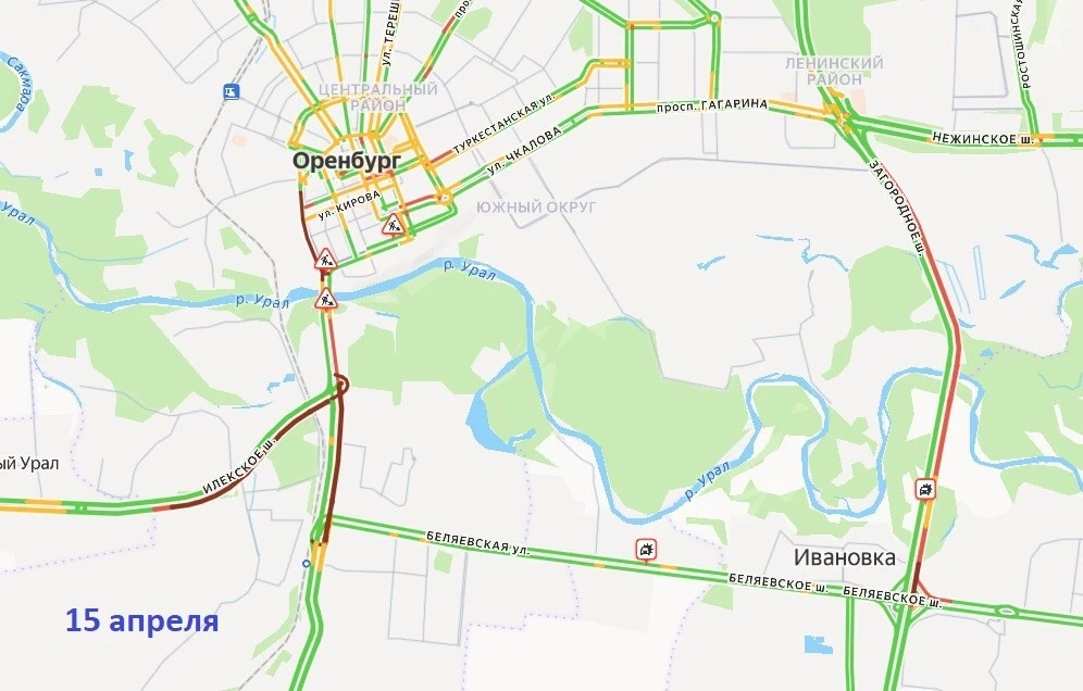 Заторы по дорогах через мосты в Оренбурге сегодня утром повторились, но не с такой интенсивностью