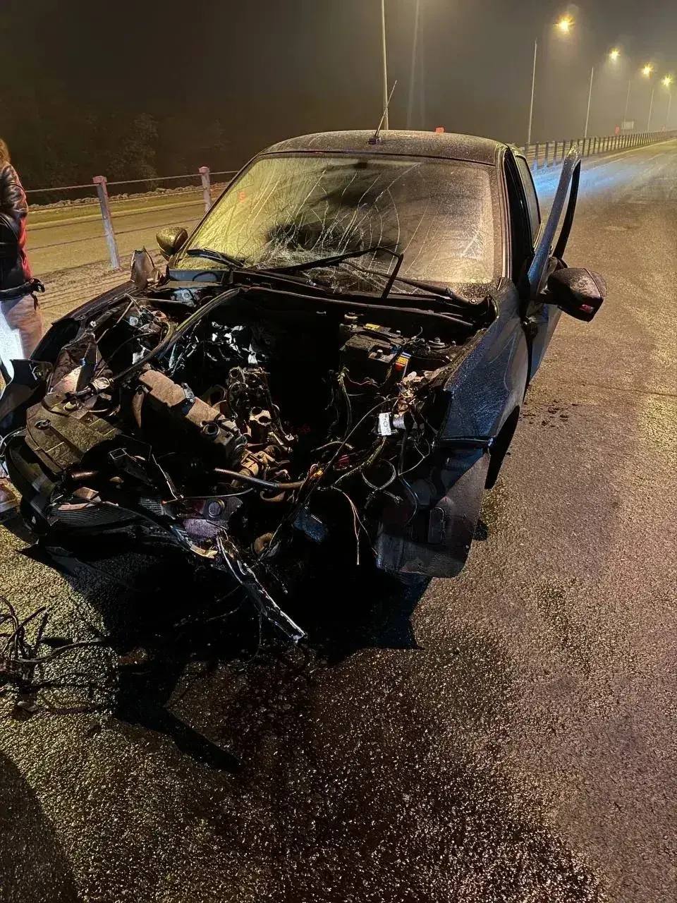 Ночью 19 марта на 6-м километре Загородного шоссе 23-летний водитель «Лады Гранты» не справился с управлением и врезался в световую опору.
