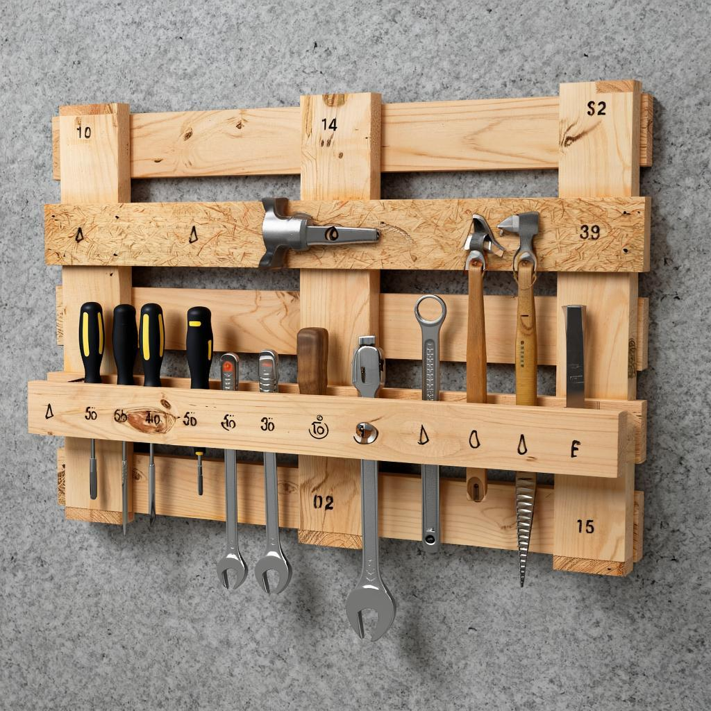 Идея использования поддонов для создания мебели известна давно, но именно в организации инструментов она открывает новые горизонты. Поддон для перевозки грузов предоставляет все необходимое: прочность, плоскую форму и карманы для креплений. Более того, его деревянная поверхность служит идеальным холстом для творчества. Такая вешалка не просто хранит инструменты — она их демонстрирует, превращая их в стильный элемент интерьера.