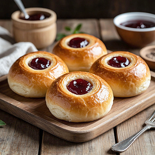 Булочки с повидлом — это не просто угощение, а символ воспоминаний о беззаботных детских днях. Они вызывают образы бабушкиной кухни и семейных чаепитий. Каждый укус возвращает к моментам, когда сначала мирно поглощалась сдоба во время школьных перемен, а аромат теплого теста наполнял воздух. Хрустящая сахарная посыпка придаёт булочкам дополнительные текстурные акценты и делает их ещё более привлекательными.