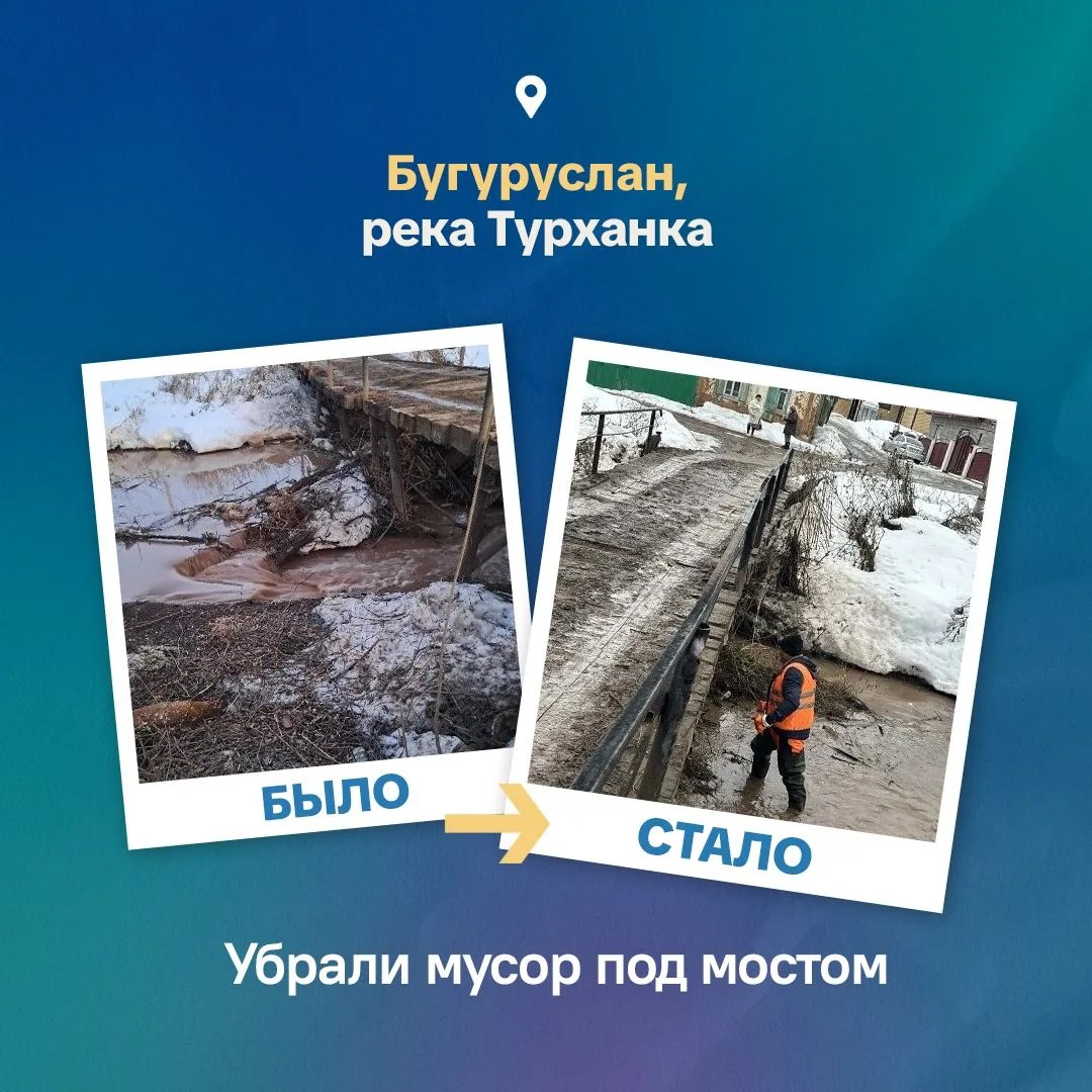 С помощью портала оренбуржцам удалось оперативно решить вопрос по откачке талых вод на перекрестке улиц Геннадия Донковцева и Мира. А в Бугуруслане убрали мусор под мостом через речку Турханка.