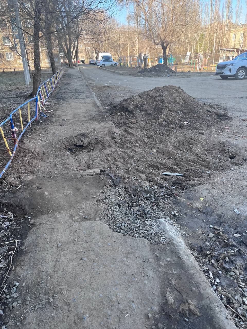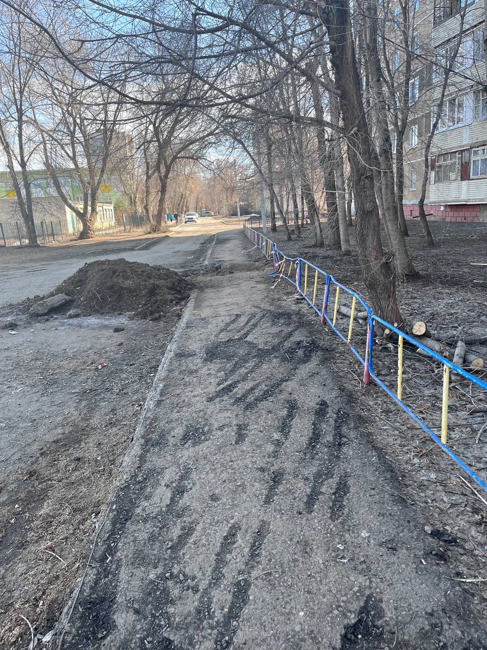 По словам местных жителей, тротуар был разрыт для проведения работ. Яма оставалась открытой все лето. Осенью 2025 года после жалоб горожан яму частично закопали. После чего, участок снова раскопали, и жителям вновь пришлось обращаться с жалобами. Зимой территорию засыпали, пообещав привести тротуар в порядок после таяния снега.