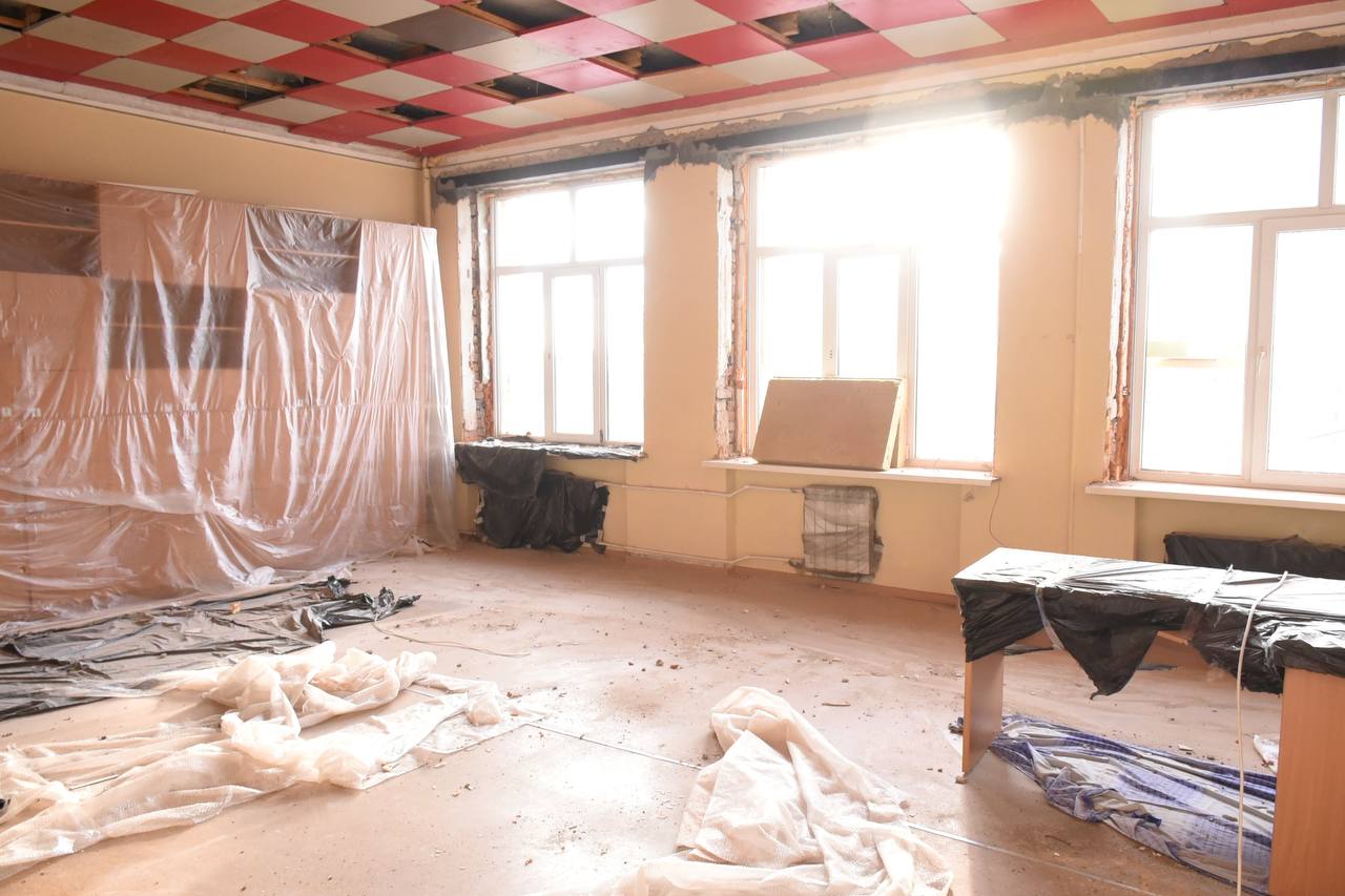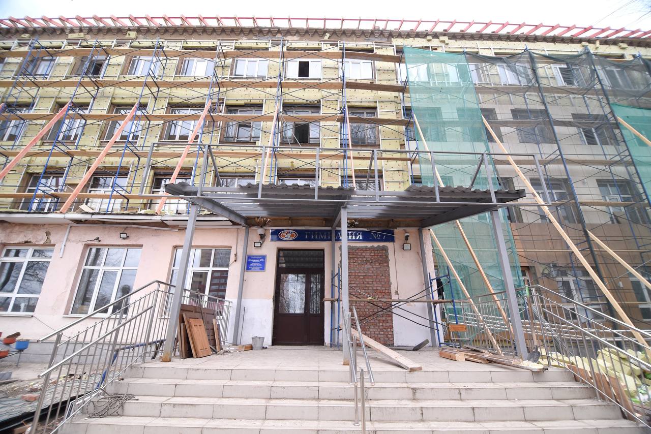 В гимназии № 7 на прошлой неделе начали ремонт кровли и фасада. Сегодня проверил ход работ.