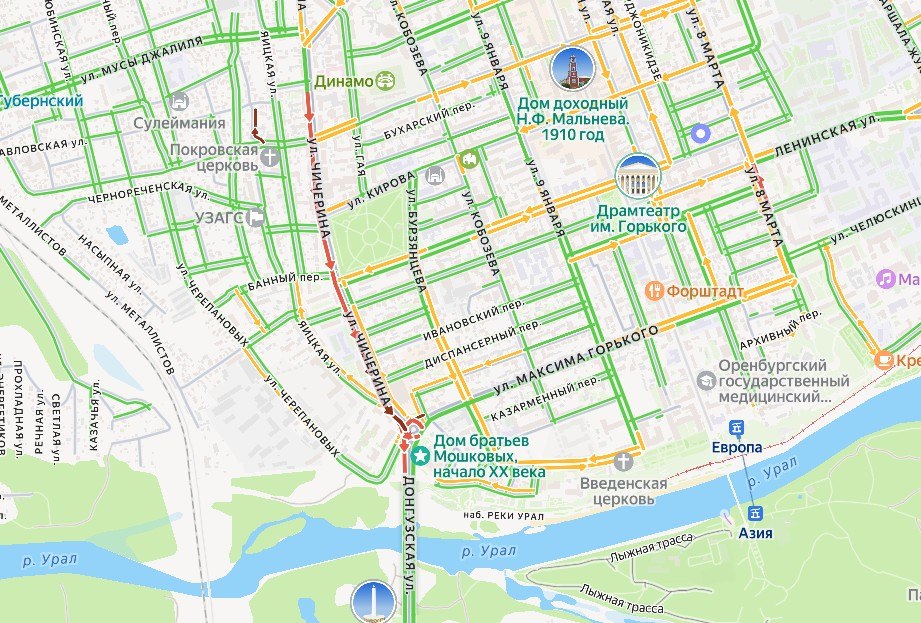 Пробка на ул. Чичерина в Оренбурге стала рекордной и растянулась более чем на 2 километра