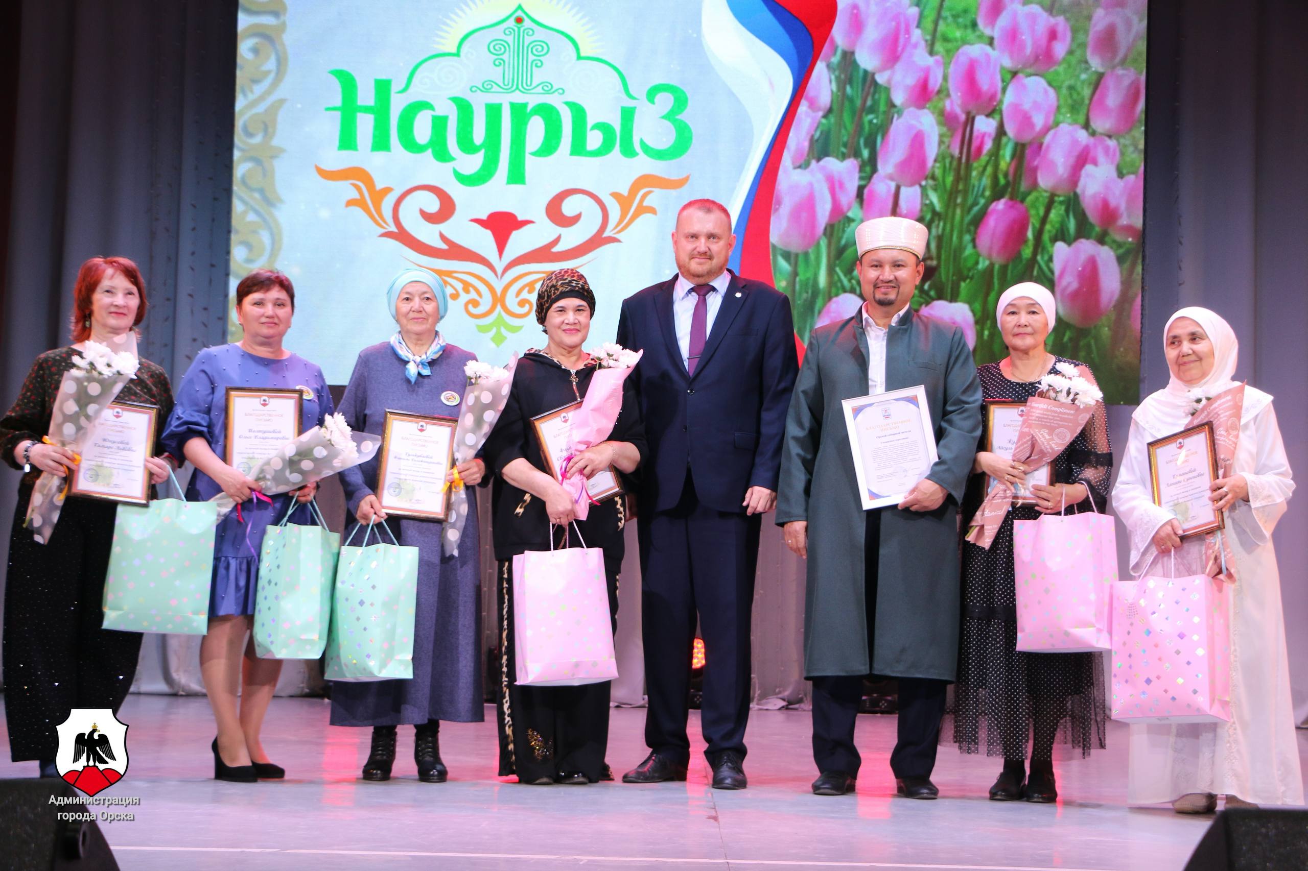 Муниципальные награды глава города вручил волонтерам Орской соборной мечети и Союза мусульманских женщин «Бердамлек» за их вклад в сборе гуманитарной помощи военнослужащим специальной военной операции.