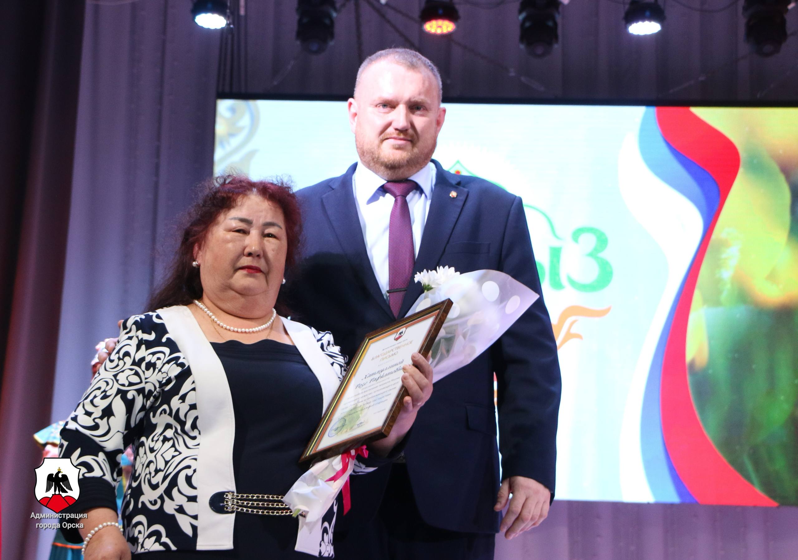 Оксана Гельмель, председатель орского горсовета и Денис Окунев, депутат горсовета отметили руководителей национально-культурных центров за вклад в межнациональное согласие жителей города.