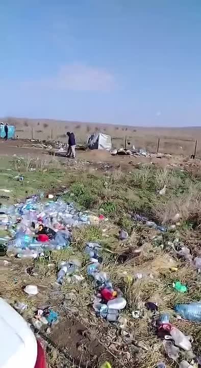 Судя по кадрам, вся нейтральная территория сильно замусорена, бутылки, пластиковые упаковки сваливаются прямо на обочину, местами образовались кучи. В туалет люди тоже ходят туда, куда придется.