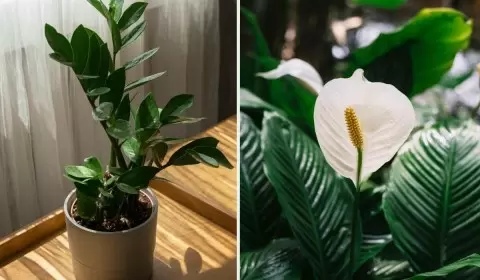 - Замиокулькас или «растение ZZ»: считается одним из самых простых в уходе. Особенно рекомендуется тем, кто сомневается в своих способностях. Это растение хорошо себя чувствует при слабом освещении и требует полива всего раз в 4–6 недель.