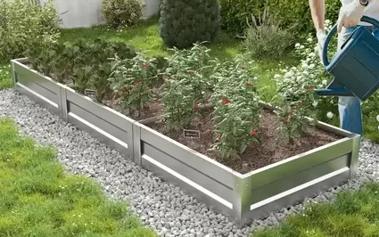 Металлические конструкции становятся популярными благодаря своей долговечности. Наиболее часто используется оцинкованная сталь с полимерным покрытием. Грядки из такого материала легко монтируются, не боятся влаги и вредителей, а их разнообразие цветов позволяет органично вписывать огород в любой ландшафт. Однако металл под солнцем может сильно нагреваться, что приводит к быстрому высыханию почвы. Также стоит обратить внимание на безопасность: острые края необработанного металла могут быть травмоопасны, но этот риск минимален, если использовать заводские модели.