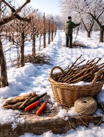 Что касается винограда, то тут ситуация немного иная. Для неукрывных сортов оптимальное время для обрезки — конец февраля. В это время основные морозы уже позади, однако сокодвижение еще не началось, что минимизирует риск подмерзания почек и снижает вероятность «плача» лозы. Ранняя зимняя обрезка винограда не рекомендуется, особенно в регионах с непредсказуемыми зимами.