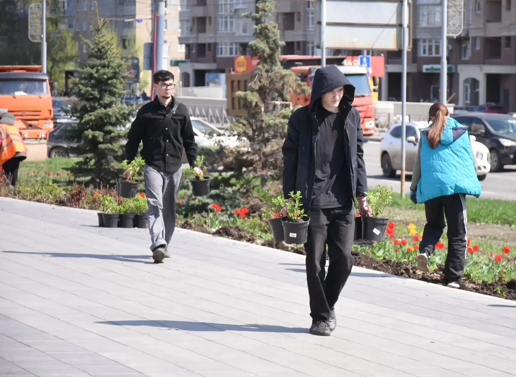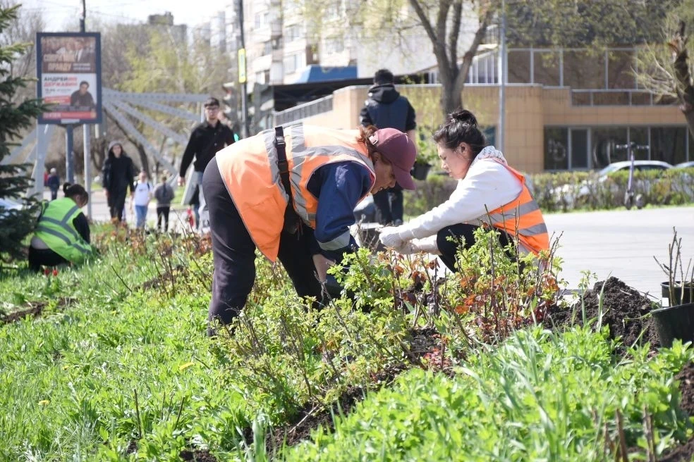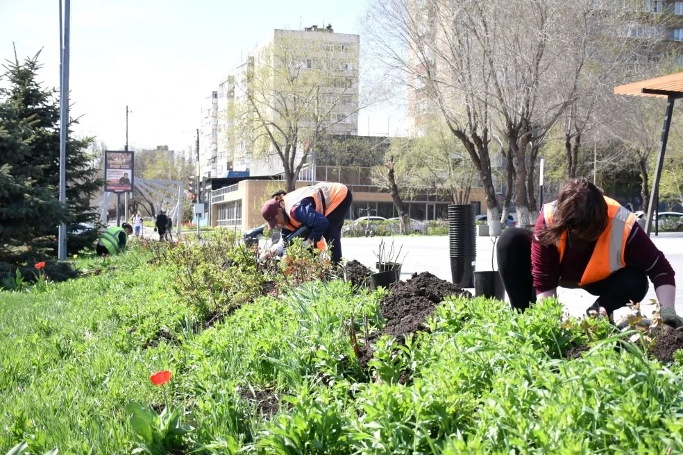В городе продолжается месячник благоустройства и озеленения. Специалисты МКУ «БиОз» и «Комсервис» трудятся не покладая рук: высаживают цветы и кустарники, поливают, рыхлят почву, формируют клумбы и следят за тем, чтобы каждый росток прижился и радовал горожан своей красотой.
