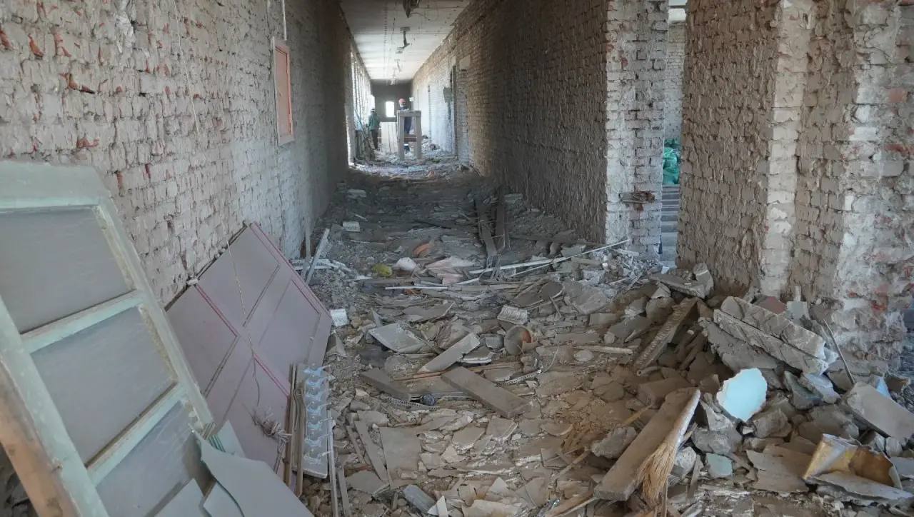С начала апреля на крыше и внутри здания школы ведутся демонтажные работы. Здесь разбирают конструктивные элементы - перекрытия, входные группы, лестницы, а также убирают инженерные коммуникации и электрику. После этого подрядчик приступит к строительным работам – будут установлены новые межэтажные перекрытия, усилены проемы подвала, выложены новые стеновые перегородки. Планируем также отремонтировать фасад и входную группу.