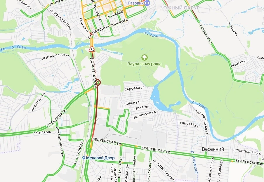 К 9 утра серьезные заторы на ул. Донгузской и мосту через Урал в Оренбурге стали меньше, но полностью так и не исчезли