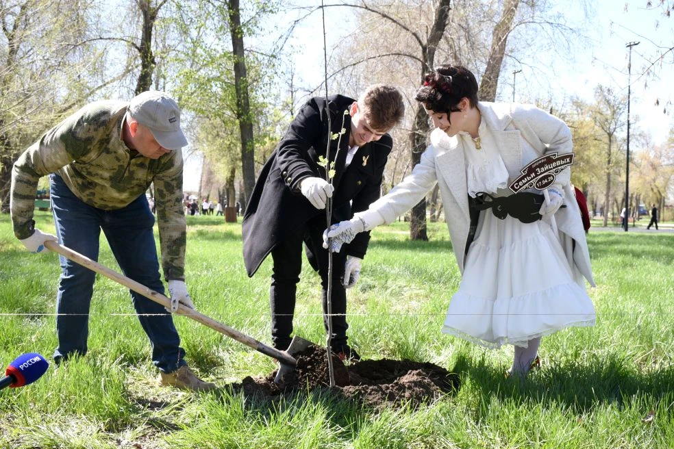 Экологическая акция «Семейное дерево» состоялась 17 апреля в Оренбурге. В парке имени Ленина участники в рамках весеннего месячника благоустройства и озеленения высадили порядка 60 саженцев, включая липы, рябины и деревья других пород.