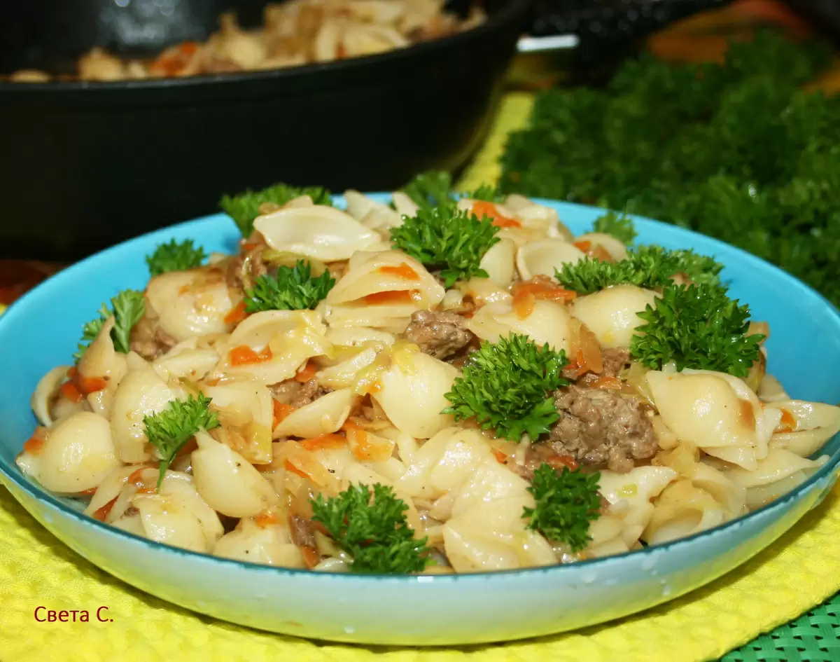 Когда нет времени на сложные приготовления, идеально подходит рецепт ленивых вареников в виде макарон-ракушек с капустой и мясом. Это не только вкусное, но и сытное блюдо, идеально подходит для обеда или ужина.