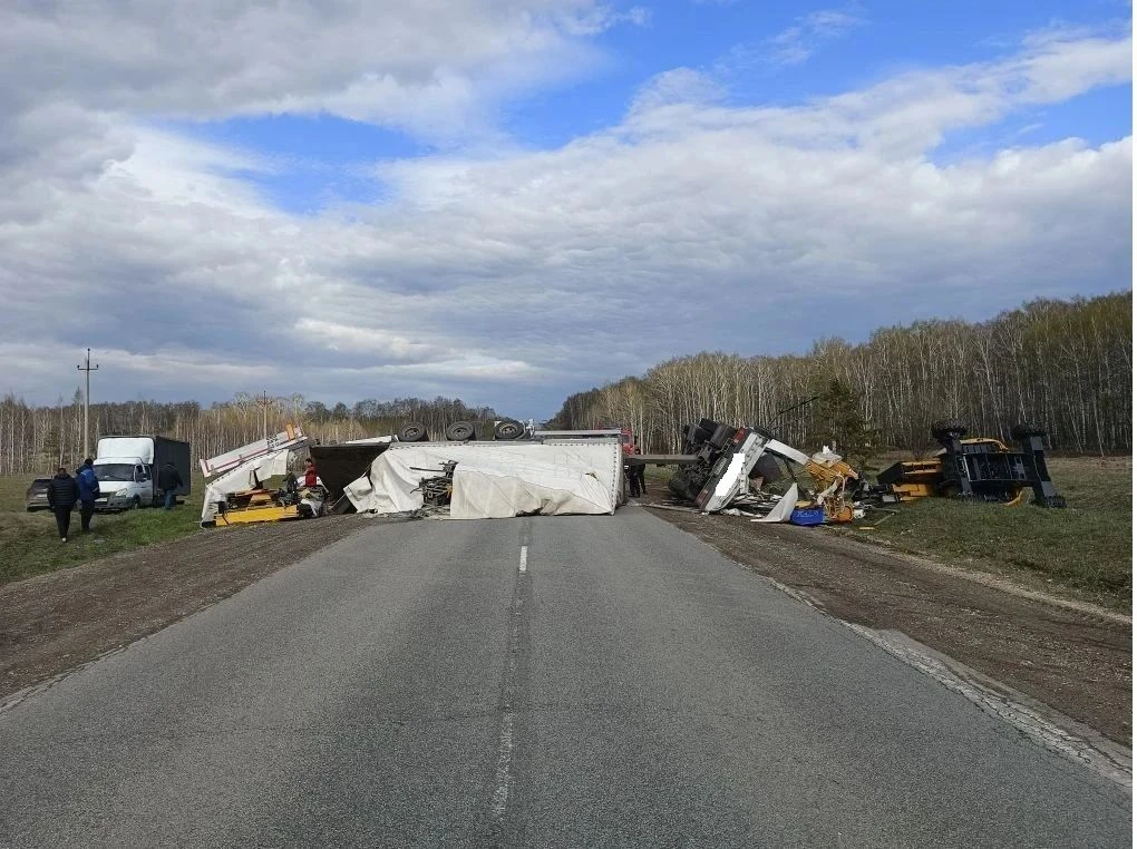 В Северном районе 26.04.2026 в 16:35ч. на 1237км. автодороги М-5 «Урал» Москва-Челябинск около с.Новодомосейкино водитель автомобиля Мерседес в сцепке с прицепом, не справился с управлением (выбрал скорость, не соответствующую конкретным условиям движения), и допустил опрокидывание автосостава на проезжей части.