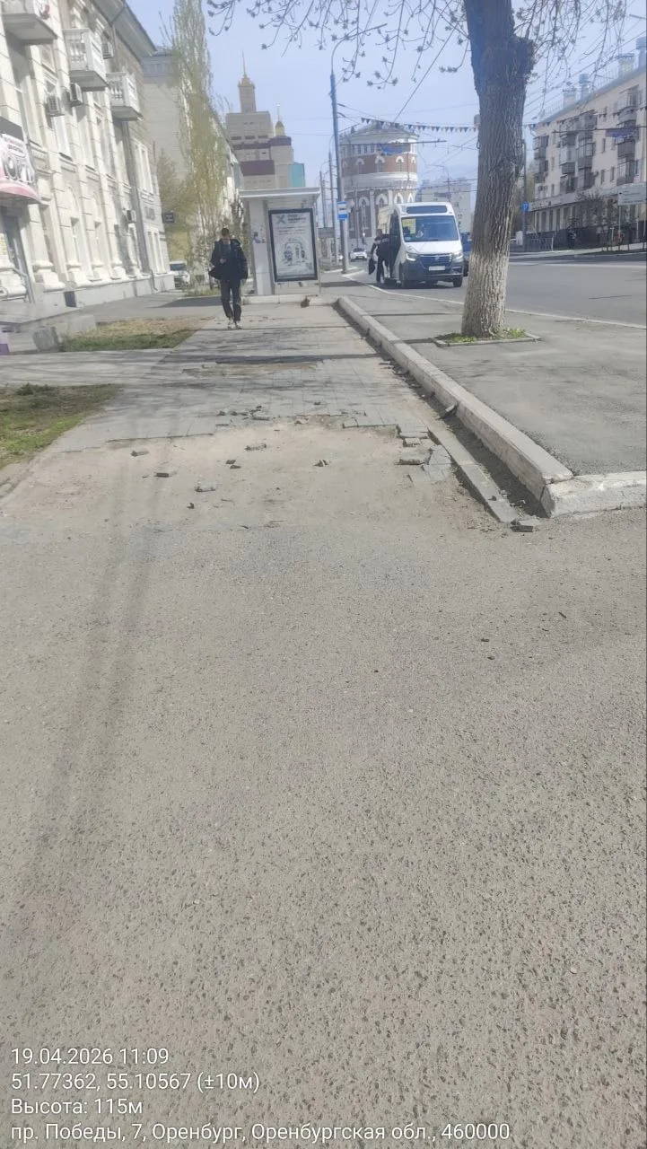 Жители Оренбурга жалуются на состояние тротуара у дома № 7 на проспекте Победы: покрытие разбито, повсюду ямы и раскрошенная плитка. По словам местных жителей, им приходится лавировать между выбоинами, чтобы добраться до остановки или просто пройти мимо: