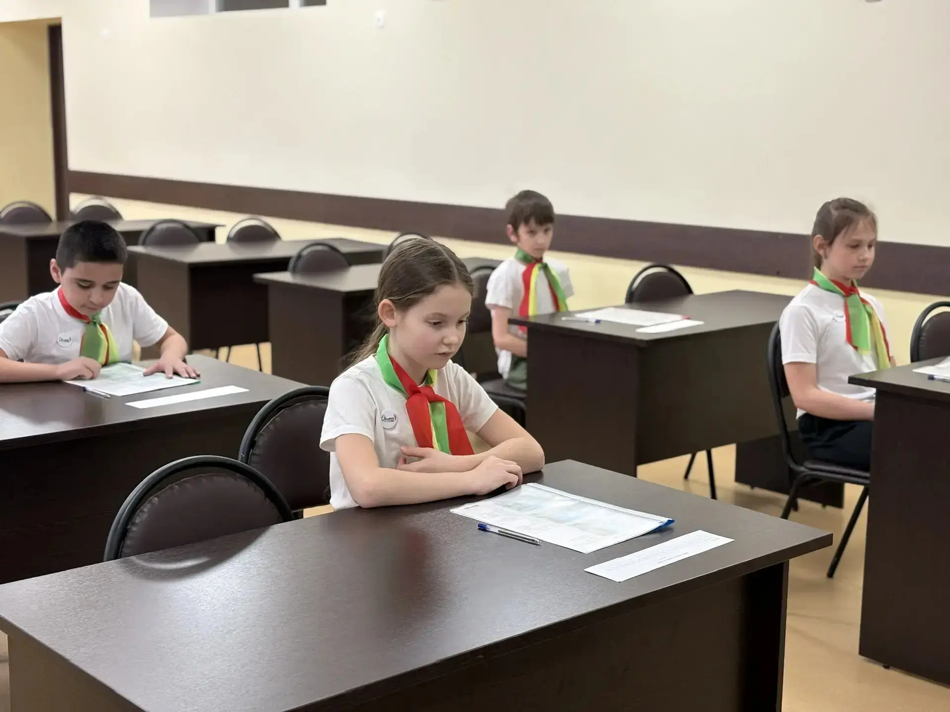 80 юных инспекторов движения от 10 до 12 лет уверенно отвечали на вопросы экзамена по правилам дорожного движения.