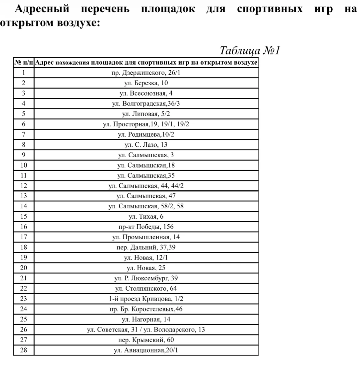 По каждому адресу составлено свое техническое задание. По каким адресам планируются работы - на фото.